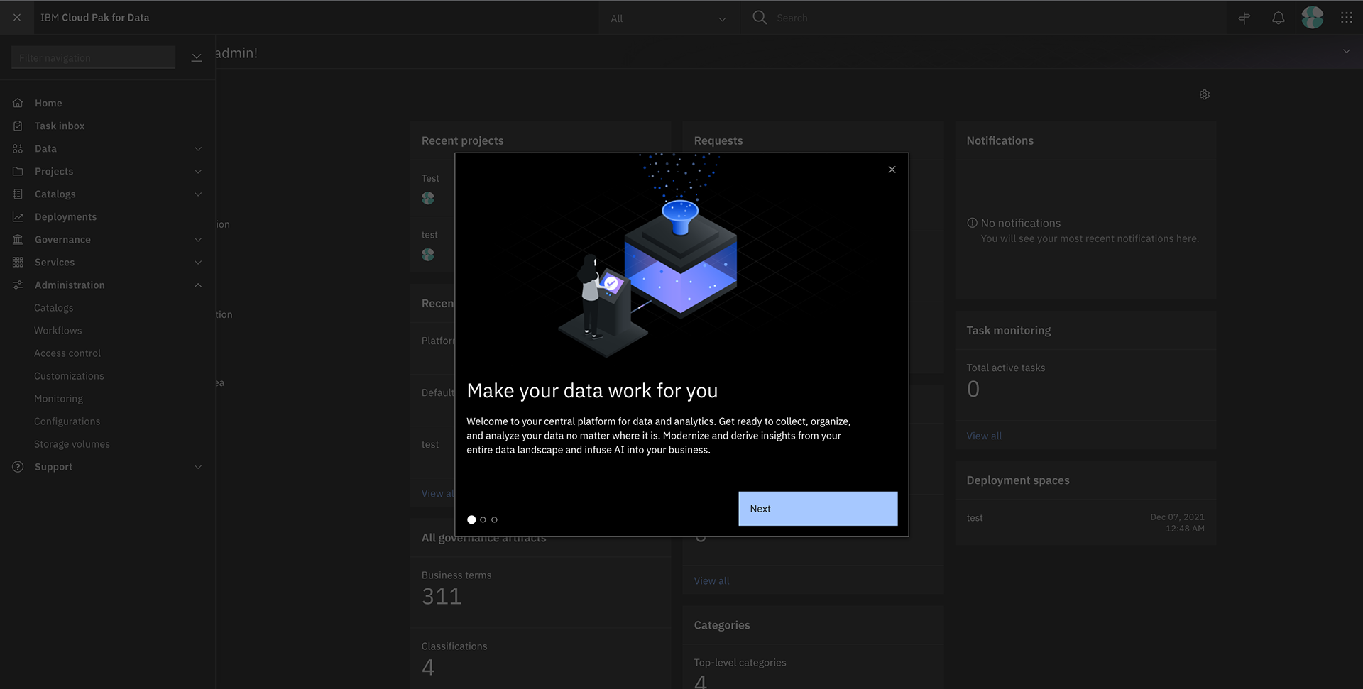 [Cloud Pak for Data 4.0+] Welcome carousel